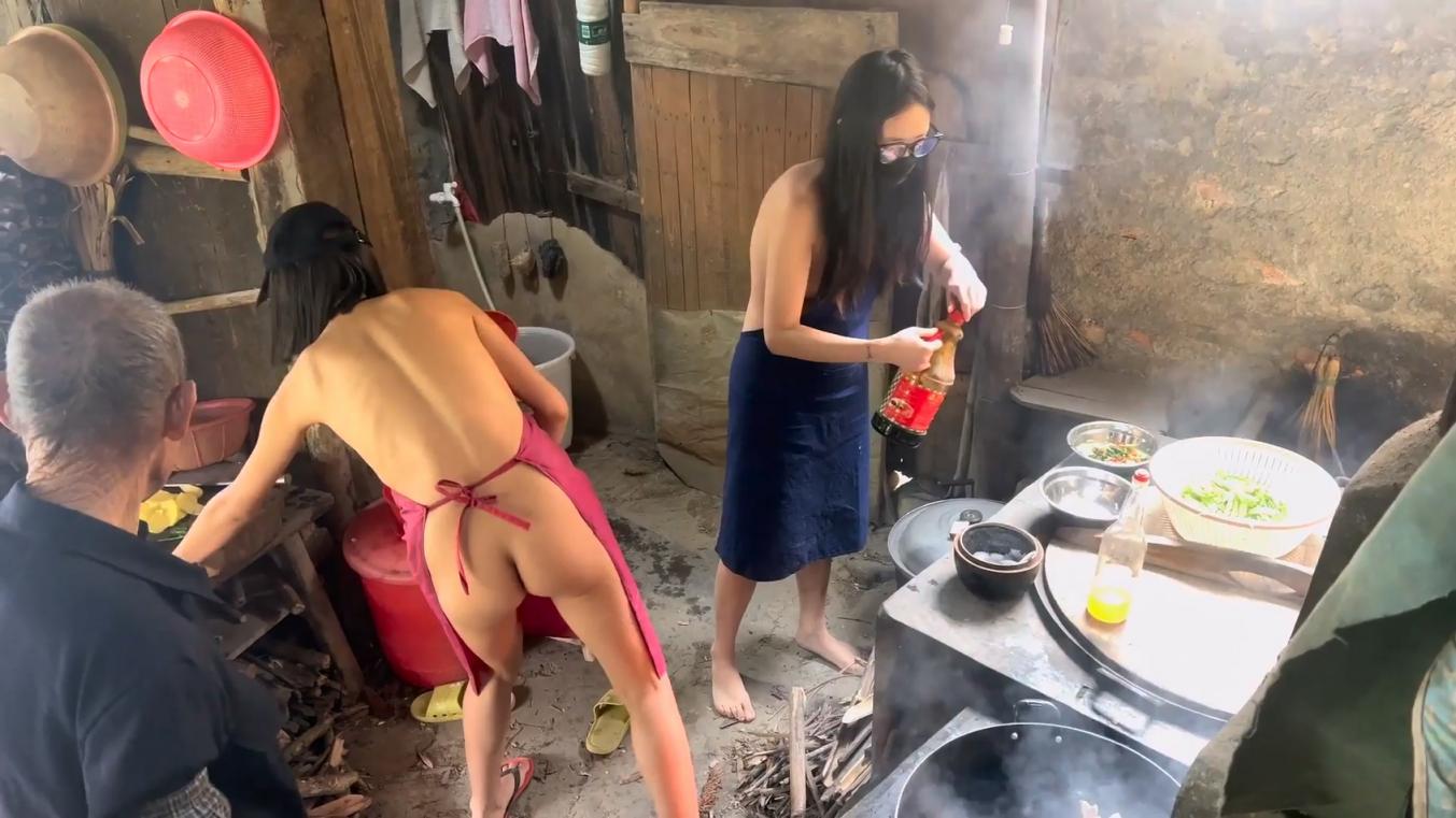 【77】⚫️天花板露出狂人御姐【cikaimoon】最新作品,联手闺蜜全裸下乡帮大爷做饭干活送温暖