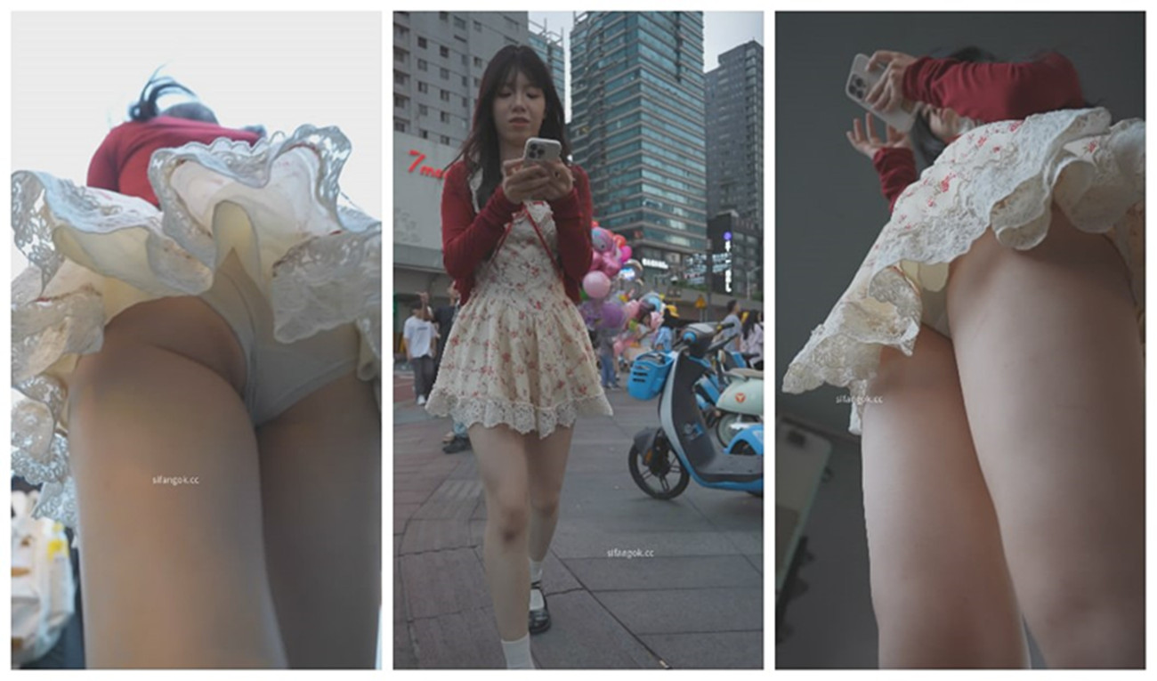 【banana cat系列】超短蕾丝花裙小姐姐逛街裙摆被吹起内裤大面积露出正面微透黑森林[116/MP4/870MB]
