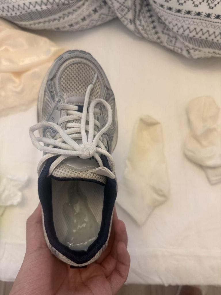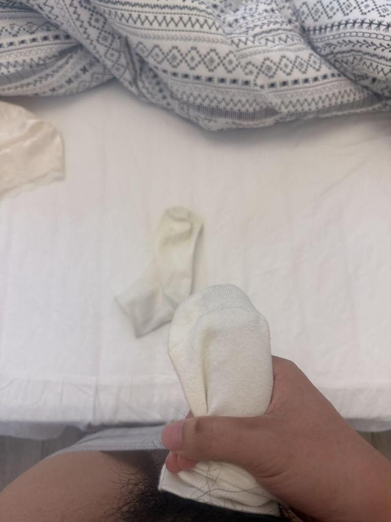 但还是难受得很。看到妹妹脱下的小白袜,今天就拿它发泄一下吧。把小白袜拿回我的房间,看着录像,偷偷打了个胶。