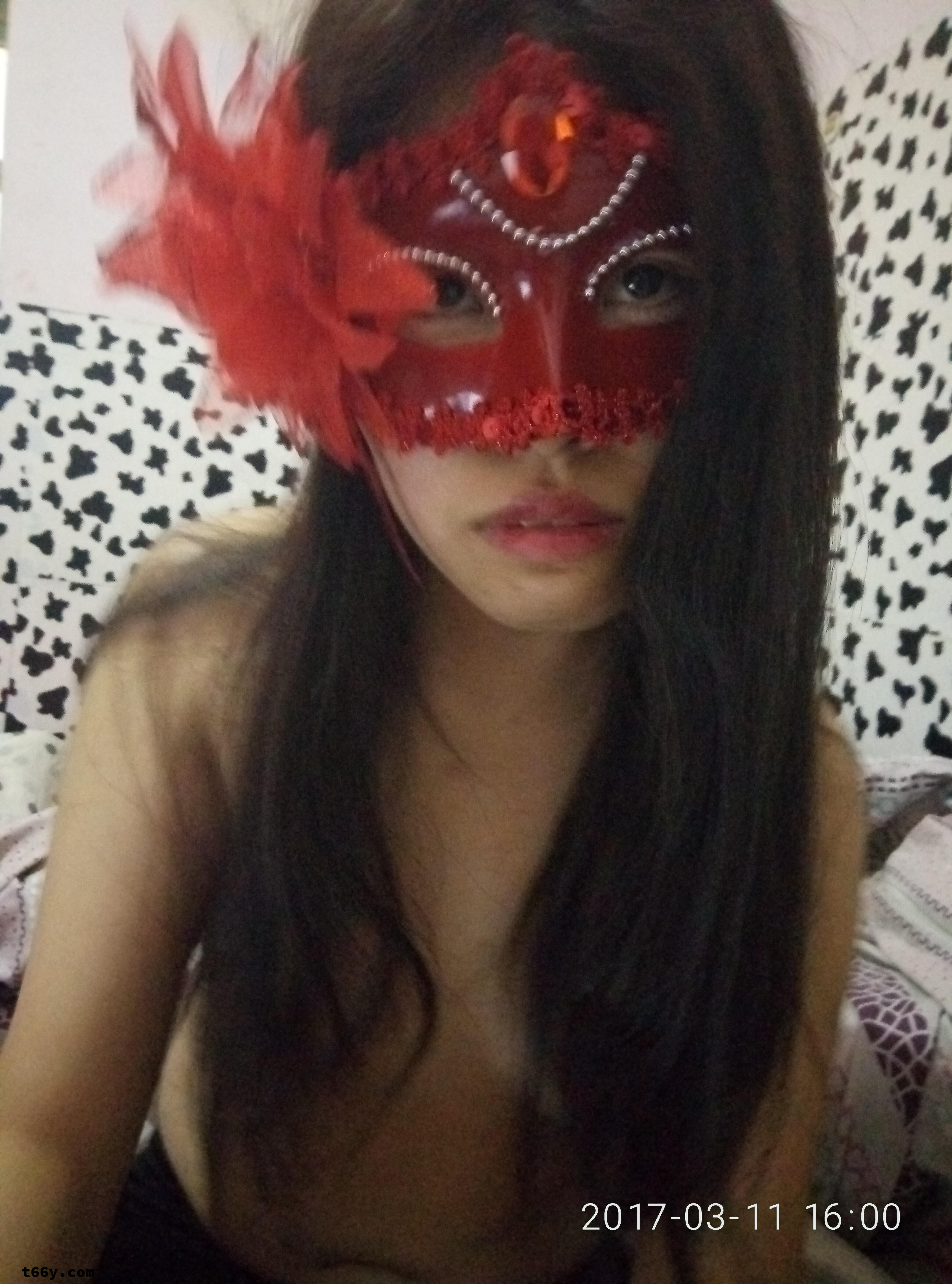 晚上直奔宾馆,先拍几张面具下的预热照,她的身材在面具衬托下更诱人。先来几张摆拍。
