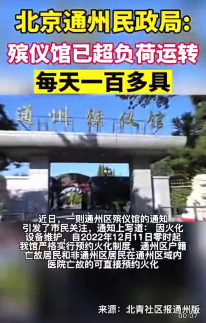 大陆北京通州殡仪馆告急!