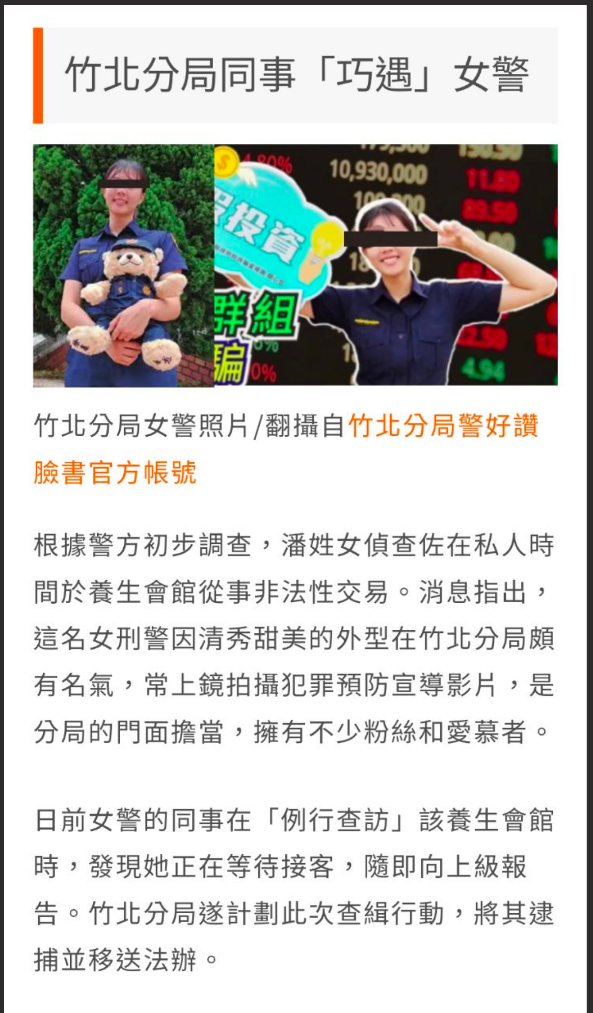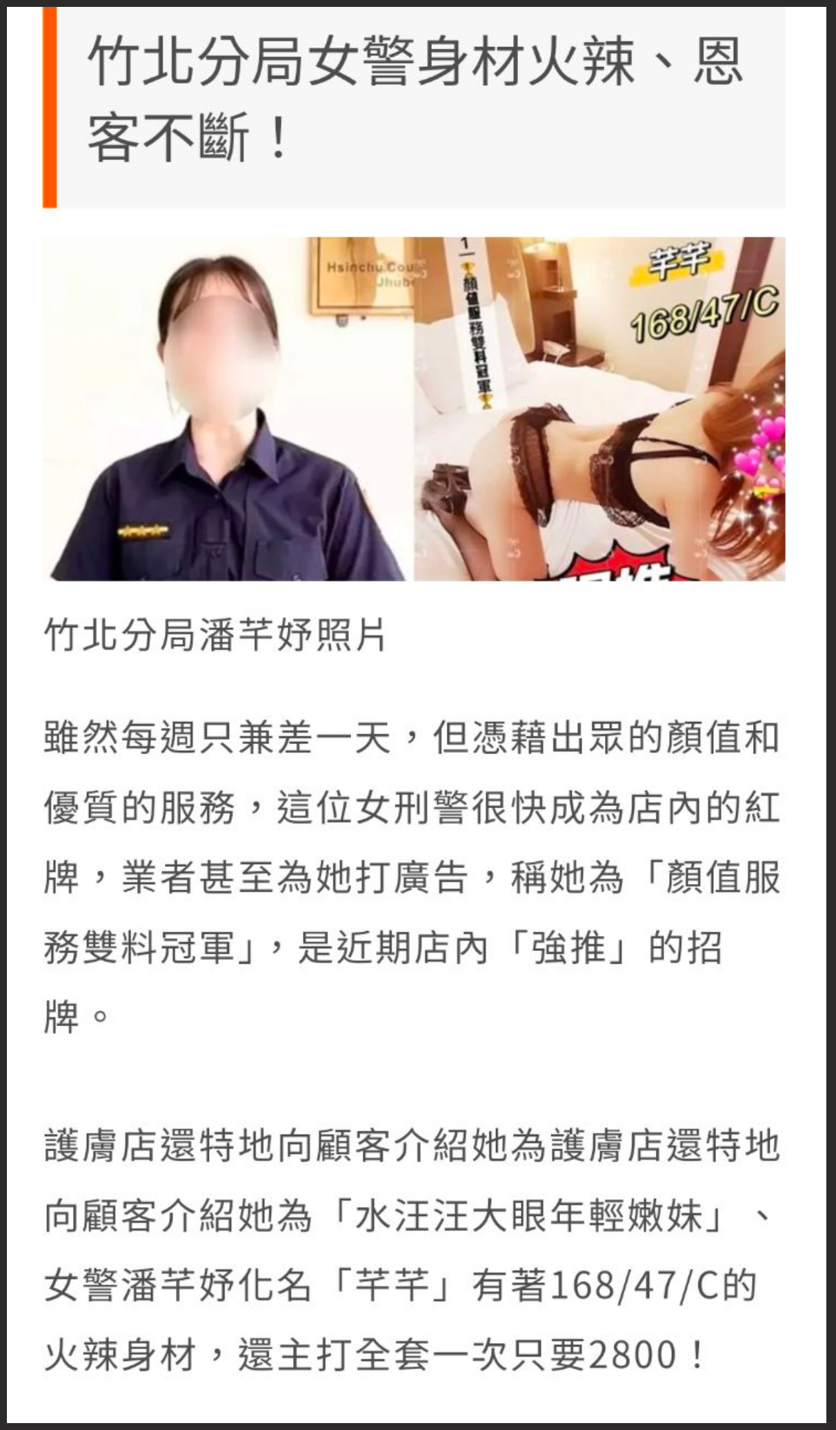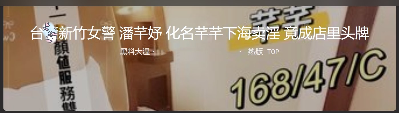 台W新竹女刑警 潘芊妤 化名芊芊下海卖淫 竟成淫窝头牌 黑丝,情趣内衣为标志性穿搭。