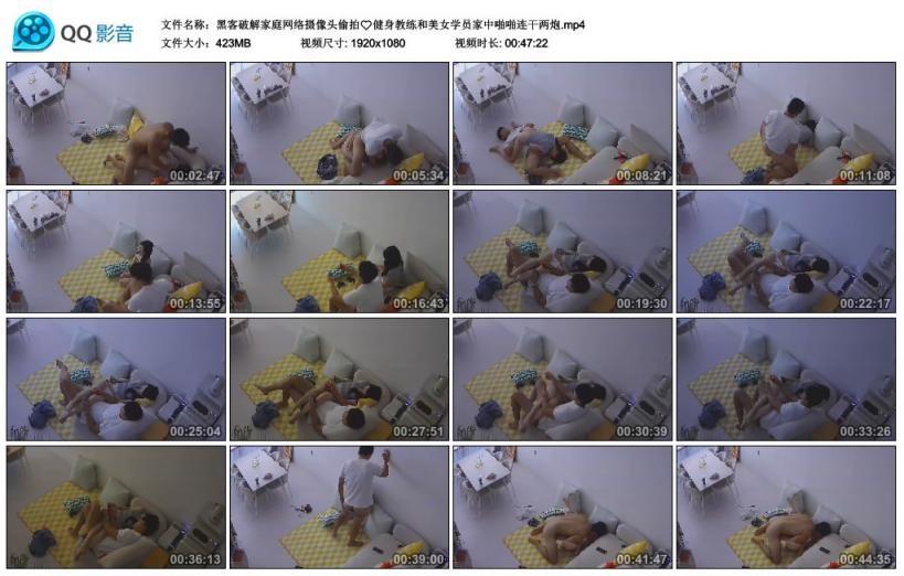 【影片名称】:黑客破解家庭网络摄像头偷拍❤️健身教练和美女学员家中啪啪连干两炮